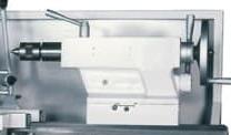 Задняя бабка имеет пиноль с ходом, что позволяет легко и быстро зафиксировать заготовку в центра и начать обработку.