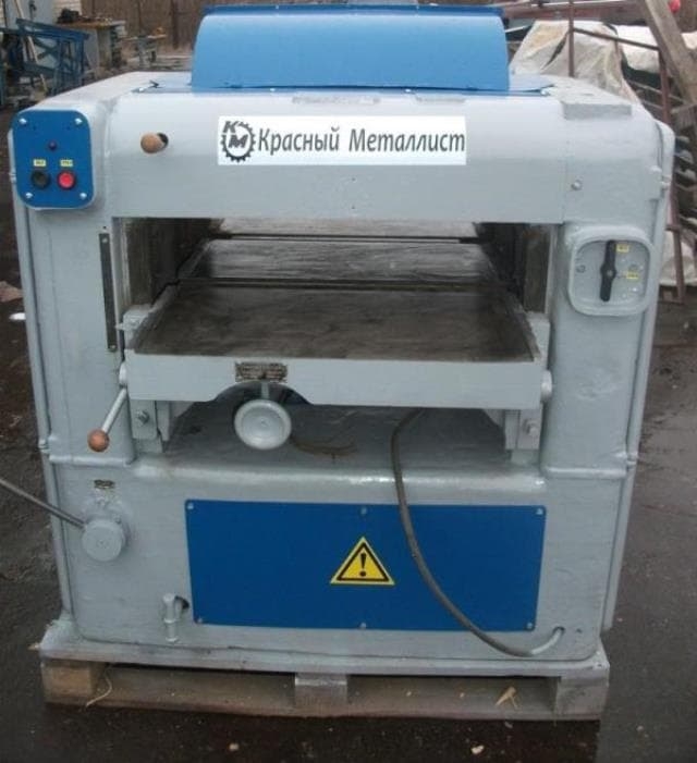 Промышленный рейсмусовый станок б/у модели СР6-7 является одним из лучших представителей легендарного Ставропольского завода «Красный Металлист». Можно так же сказать, что лучшим танком второй мировой войны признан советский танк Т-34, а лучшим маленьким рейсмусом 70-80-х годов прошлого века стал рейсмус СР6-7. Рейсмус имеет жесткую литую станину. Несмотря на свои небольшие размеры, станок имеет очень приличный вес в 1300 кг. Такая большая масса (он цельнолитой) обеспечивает хорошее гашение вибраций и как следствие высокую чистоту обработки материала. Двухножевой (иногда четырехножевой) вал имеет высокую ремонтопригодность, замена подшипников может быть проведена персоналом с не очень высокой квалификацией без специального инструмента. Мощный электродвигатель имеет двукратный запас по мощности относительно своих современных собратьев. Очень рационально реализован механизм подачи. Электродвигатель с тарельчатым вариатором плюс редуктор. Данная конструкция безотказно работает десятилетиями. Некоторые экземпляры проработали без ремонта данного узла 36 лет. Стол чугунный, коробчатой.Управление подъемом осуществляется от механизма ручного управления. Механизм подъема стола не самое удачное решение данного станка. Червячная пара размещенная внутри стола при износе имеет свойство подклинивать перемещение строа. На столе установлены два гладких ролика. Для настройки выхода роликов под твердость обрабатываемого материала (лиственные или хвойные породы) они регулируются. Регулировка выхода роликов над столом сделано очень просто и надежно. Кстати, на большинстве современных импортных рейсмусов наличие роликов на столе не входит в базовую поставку, а является опцией и, соответственно, оплачивается дополнительно. Когтевая защита литая, выполнена из чугуна. Для предупреждения сколов древесины в месте выхода ножа имеется тяжелый, литой передний прижим. Электрическая схема проста и надежна. На сегодняшний день данные станки сняты с производства, поэтому можем предложить вам рейсмус б у СР6-7 после ремонта. Стоимость рейсмуса б у СР6-7 составляет около 30% от стоимости современного аналога.