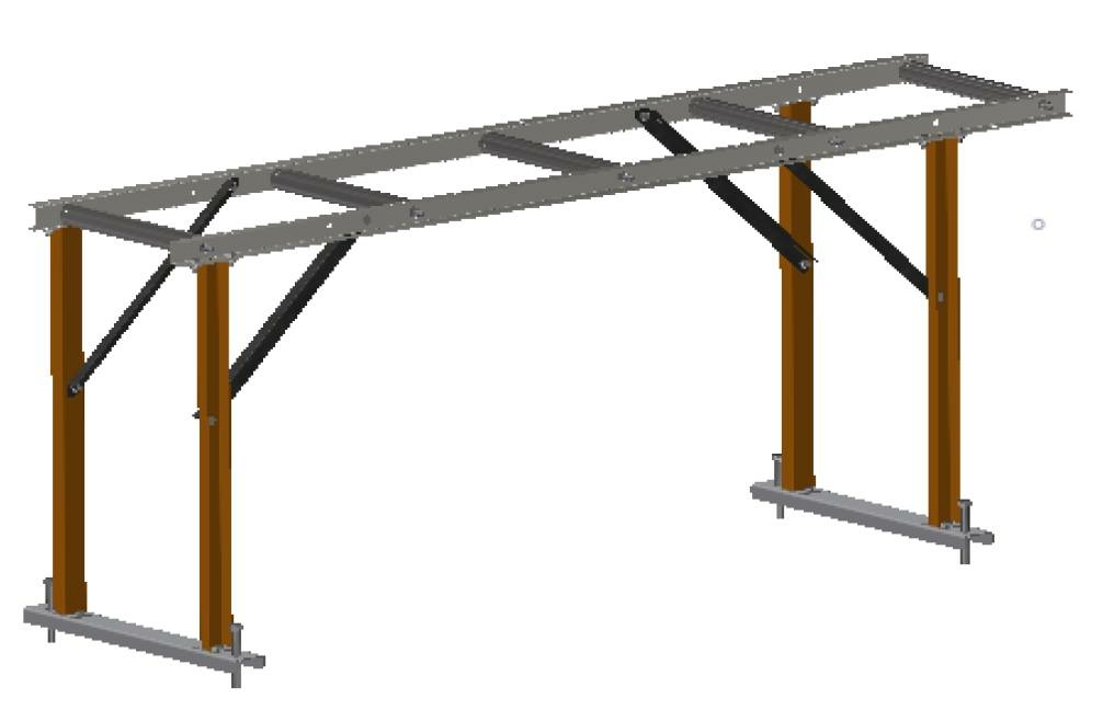 - Универсальность достигается за счет болтовой регулировки высоты опор рольганга