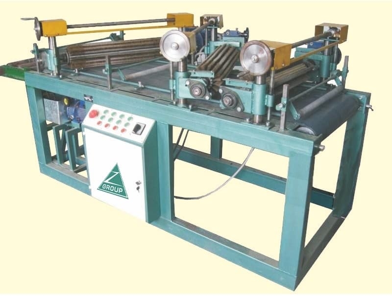 - Функционально состоит из основания с транспортерной подачей заготовки, 3-х регулируемых по высоте узлов с с цилиндрическими щетками. 1-я и 2-я щетки располагаются под углом 20 градусов.