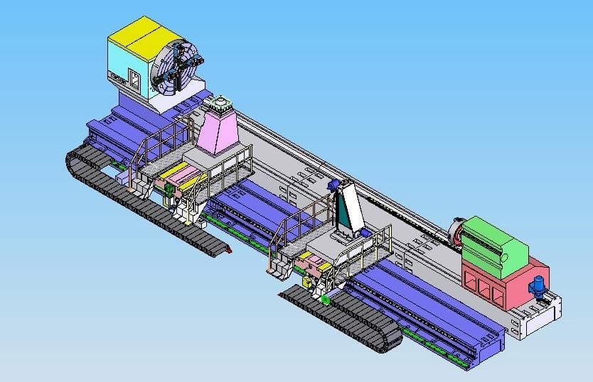 Станок токарный с ЧПУ РТ955Ф3 предназначен для комплексной обработки крупногабаритных деталей диаметром до 2000 мм, длиной до 10000 мм, весом до 60 т.