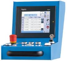 - ЕС-управление: Установка по сенсорному экрану длины отгибаемого элемента, угла гибки, высоты подъёма верхней траверсы над отогнутой стороной; возможность сохранения в памяти 200 программ, каждая из 36 элементов; просмотр изделия в объёмном изображении; каждому профилю может быть присвоен своё обозначение; функция копирования профиля; запуск в работу ножным выключателем.