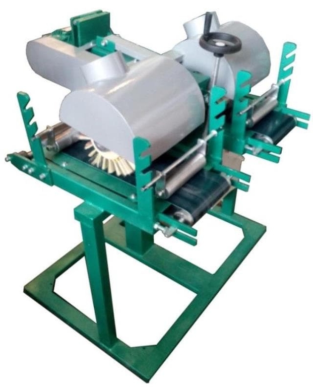 - 2 щетки расположены с обеих сторон станка. После обработки на металлической щетке, заготовка подается на абралоновую щетку;