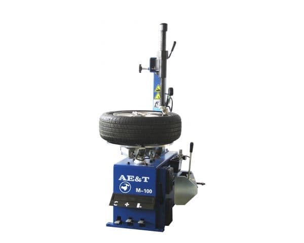 Шиномонтажный станок AE&T М-100 для колес с дисками диаметром 10–22”. Считается станком начального уровня, когда шиномонтажная мастерская только начинает работать. Стандартный шиномонтажный полуавтомат серии эконом. Таким образом, если резина очень жесткая или колесо с низким профилем, диск может проворачиваться в зажимных лапках. В 2016 году монтажный стол заменен на квадратный, что позволяет зажимать диски 10-22” (внешний зажим 10-19”, внутренний 12-22”). При этом самый популярный станок. Надежный, простой в использовании полуавтомат. Для станций технического обслуживания с небольшим объемом работ.