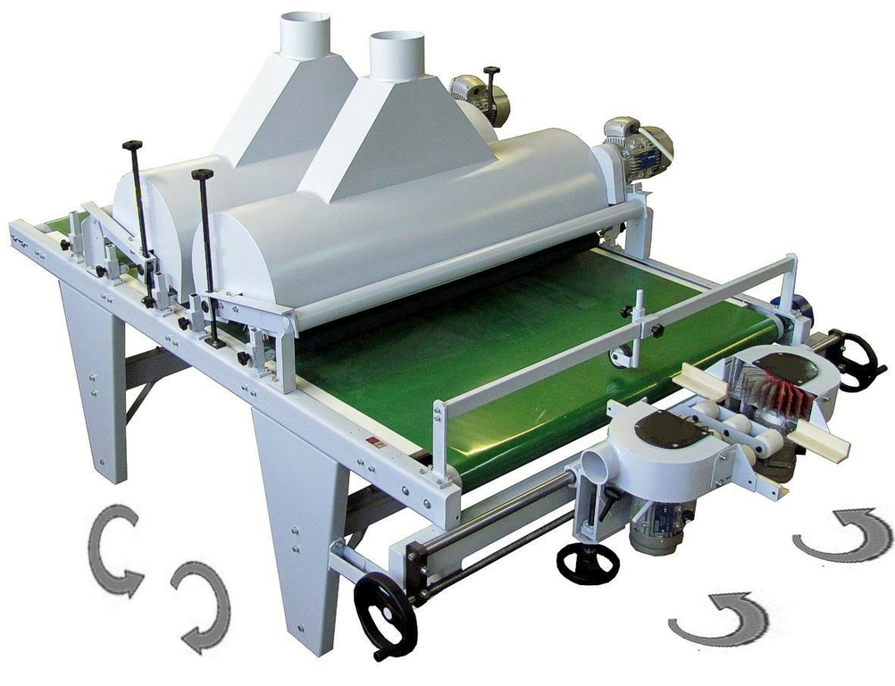 В зависимости от установленного типа щеток может быть использован как станок финишного шлифования или на этапе подготовки изделия к нанесению ЛКМ.