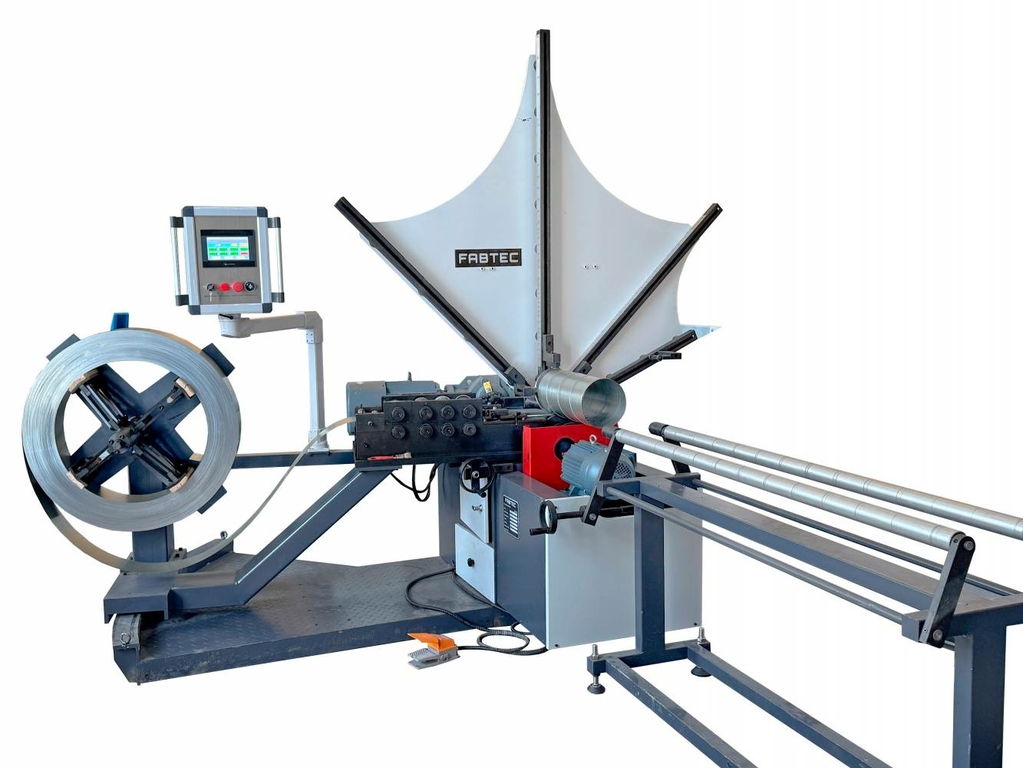 • Спирально-навивной станок оснащен гибкими формирующими кольцами, имеет встроенный разматыватель рулонного металла грузоподъемностью до 750 кг и прибор для подсчёта произведенных труб;