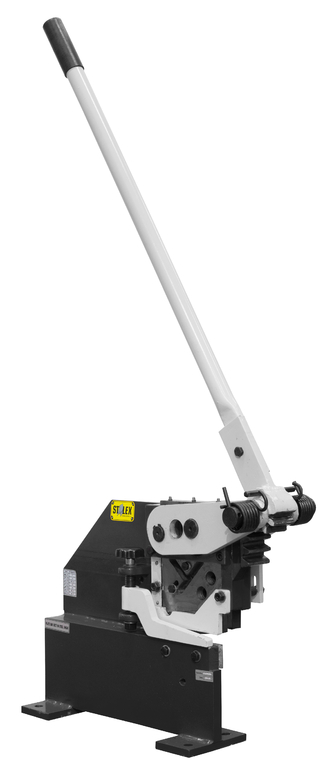 Многофункциональные ножницы Stalex PBS-7 – прочный универсальный резчик для листовой, полосовой, профильной (круглое, квадратное сечение), угловой стали и тавровых балок. Станок способен резать круглые заготовки диаметром до 22 мм, квадратные до 20 мм, листовая сталь толщиной до 10 мм и тавровые балки размером до 60х7 мм. Ножницы оснащены прочным прижимом, регулируемым по высоте и высококачественными режущими ножами.