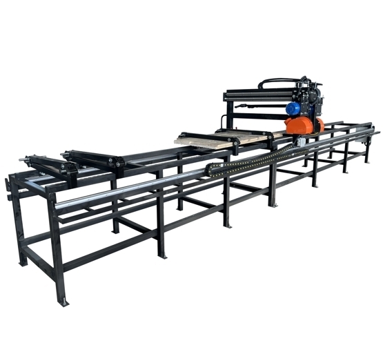 Работа производится оператором вручную, он управляет фрезерным узлом и пилой. Оборудование рассчитано на выполнение торцевания и фрезерования поперечных пазов, расположенных продольно. Высота доски – 35-70 мм, ширина ряда досок до 800 мм.