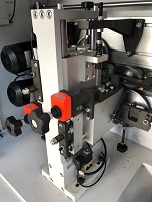 ЗОНА ПРИЖИМА Оснащена главным прижимным роликом с приводом и тремя дожимными роликами позволяет прижать любую рулонную кромку и полосовой материал - рейку. С помощью цифрового счетчика регулируется ход прижима на толщину кромочного материала. Усилие пресс группы задается пневматически, что позволяет качественно приклеить кромочный материал к детали. Если регулировка пресс группы осуществляется механически с помощью пружины, то одного усилия на пресс валах добиться не удастся, что приводит к частичному отклеиванию кромки. |