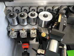 КЛЕЕНАНОСЯЩИЙ УЗЕЛ Оснащен пневматическими шторками защищающими клеенаносящий вал от грязи и пыли. Шторки автоматически открываются при подаче заготовки, обеспечивая лучшее качество приклеивания кромки. |