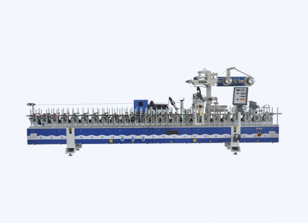 Станок для облицовывания профильных погонажных изделий с щелевым клеенаносящим соплом и плавителем (возможность работы с PUR клеем-расплавом). Станок предназначен для работы с рулонными облицовочными материалами. Ширина клеенанесения 350 мм.