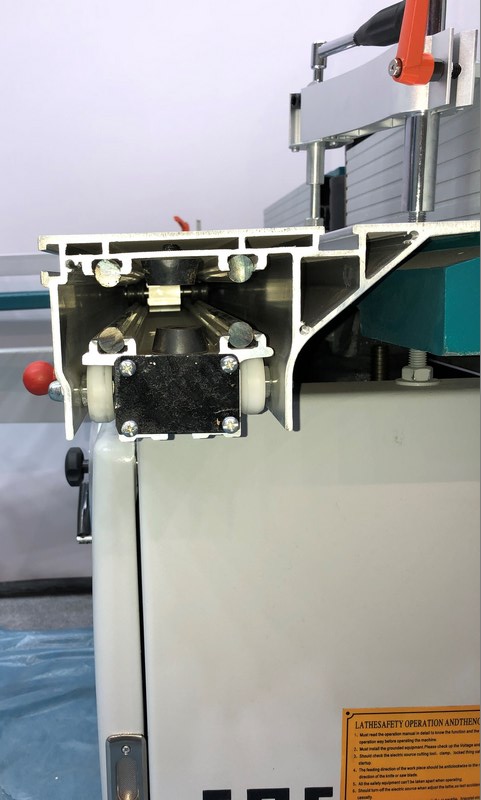 ПОДДЕРЖИВАЮЩИЙ СТОЛ, УПОРНАЯ ЛИНЕЙКА Поддерживающий стол имеет телескопическую опору что исключает, возможное провисание стола и неточность обработки. Упорная линейка снабжена милиметрической шкалой с 2-мя флажковыми упорами. |