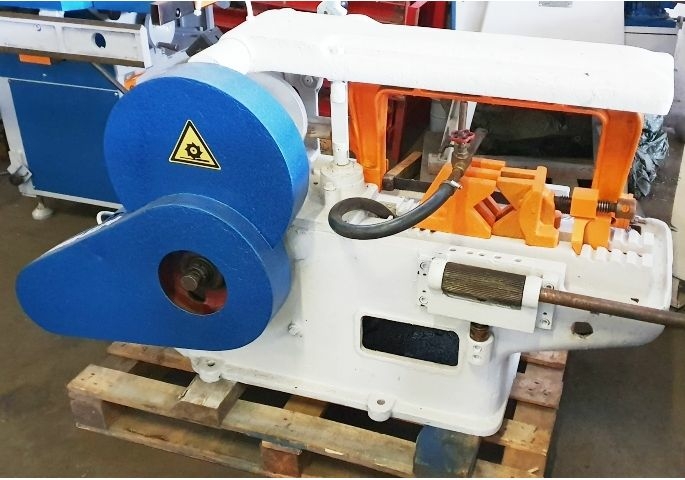 Станок отрезной ножовочный 8725 б/у предназначен для холодной резки металла различного профиля. Резка металла, закрепленного в тисках, производится ножовочным полотном. Для закрепления пакета заготовок тиски укомплектованы специальным кронштейном. Резка заготовок под углами производится в специальных комбинированных тисках.