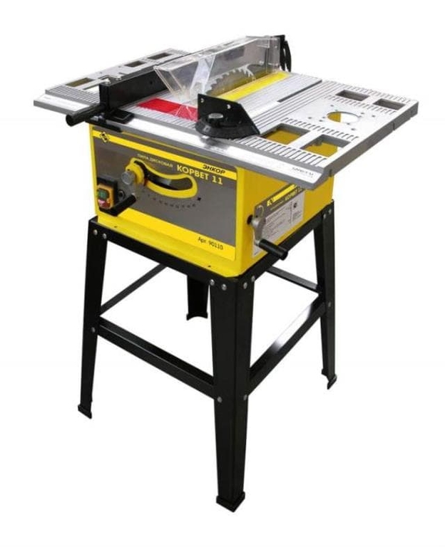 Пильный станок «Корвет 11» предназначен для продольного и поперечного распила заготовок из мягких и твердых пород дерева. При установке специально предназначенных дисков станок можно использовать для распиловки ламинированных панелей, ластика, алюминиевого профиля и других подобных материалов. Распиловочный станок Энкор Корвет-11 90110 - это легкий и удобный инструмент для продольной распиловки заготовок из дерева или деревосодержащих материалов (ДСП, ДВП). Параллельный упор обеспечивает прямолинейность подачи заготовок, а транспортирный упор позволяет распиливать заготовки под заданным углом. За счет наклоняемого диска можно пол