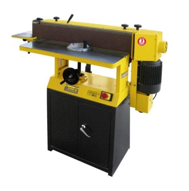 Шлифовальный станок «Корвет 58» предназначен для шлифования заготовок из дерева и деревосодержащих материалов. В этом станке к круговому движению шлифовальной ленты добавляется осциллирующее движение, что повышает качество и чистоту обработки поверхности заготовки. Станок поставляется в комплекте с тумбой. Предусмотрен наклон ленточного узла, что позволяет ленте двигаться и в горизонтальной, и в вертикальной плоскости. Имеется патрубок для подсоединения пылесоса. Рабочий стол отлит из чугуна и регулируется по высоте. Имеется дополнительный рабочий стол, который устанавливается с торца ленточного узла для шлифования закругленных поверхностей. Шлифовальный станок Энкор Корвет-58 90580 используется для шлифования кромок и торцов материалов из древесины, а также деревосодержащих материалов, таких как ДСП, ДВП или МДФ. Наклоняемый ленточный узел (до 45 градусов) расширяет возможности обработки. Удобный упор, с регулировкой по высоте, упрощает работу оператора и облегчает физическую нагрузку. Прямой привод станка снижает потери КПД на трансмиссию и увеличивает эффективность обработки. Система натяжения ленты позволяет быстро приступить к работе после смены ленты. В станине имеется шкаф для хранения оснастки и инструмента.
