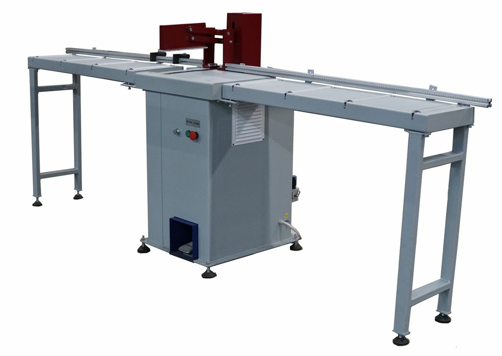 Торцовочный станок с пневматическим приводом пильного диска. Его можно использовать как отдельно, так и в технологической линии, для вырезания дефектов, торцевания заготовок, изготовления элементов мебели, дверей, рам и переплётов, на деревообрабатывающих производствах любой мощности.