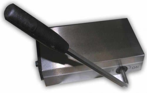 Он крепится на рабочий стол станка при помощи двух прижимов, которые идут в комплекте со столом. Включение и выключение магнита осуществляется поворотом рукоятки, расположенной на боковой стороне стола.