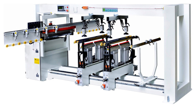 Сверлильно-присадочный станок NDB201 предназначен для высокоточного сверления за один проход сквозных и глухих отверстий в кромках и пластях мебельных щитов, деталях корпусной мебели.