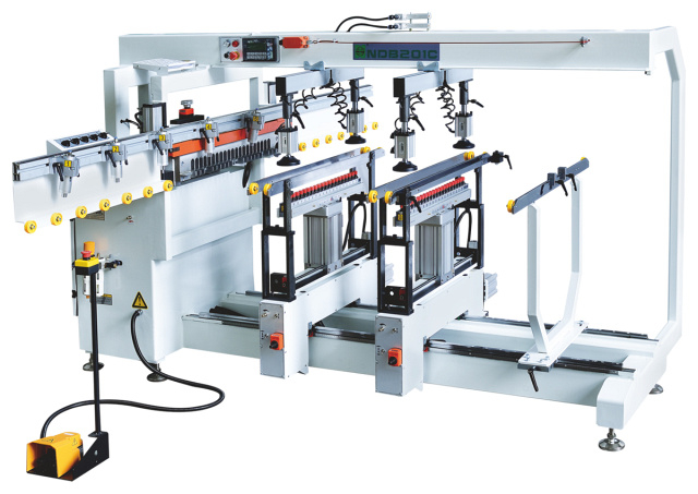 Сверлильно-присадочный станок NDB201C предназначен для высокоточного сверления за один проход сквозных и глухих отверстий в кромках и пластях мебельных щитов, деталях корпусной мебели.