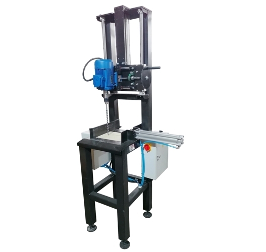 Сверлильный узел может устанавливается в поточной линии. Сверлильный станок в базовой комплектации оснащен боковым пневмозажимом заготовки, пневматическим приводом подачи инструмента, имеет шкаф подготовки воздуха и электрический шкаф управления.