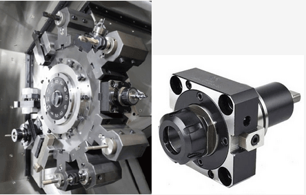 Револьверная голова с сервоприводом и блоками приводного инструмента Приводной инструмент позволяет выполнять осевое, радиальное, угловое сверление и фрезерование. Привод осуществляется к задействованному в обработке инструменту. |