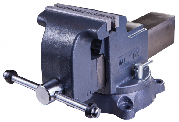 Слесарные тиски типа «Мастерская», модель WS4, являются универсальной оснасткой, используемой для выполнения слесарных работ широкого профиля. Приспособление, имеющее чугунный корпус, весит 10 кг. и имеет прочное, устойчивое основание. Прижимной механизм имеет расход 100 мм, позволяющий жестко фиксировать заготовку. Тиски слесарные этой модели оборудованы поворотным механизмом, который позволяет легко позиционировать заготовку в диаметральной плоскости. Тисочные губки имеют ширину 100 мм с рифленой поверхностью, создающие широкую зону прихвата. Приспособление имеет необходимые приспособления для фиксирования заготовок цилиндрической формы и труб, диаметром до 40 мм.