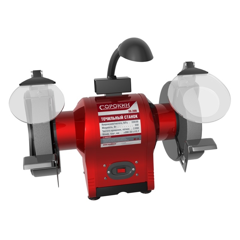 Точильный настольный станок Сорокин 20.200 предназначен для обработки любой твердой поверхности. Стачивание, шлифовка, полировка. Точильный станок оборудован защитными прозрачными экранами для предотвращения попадания твердых частиц на открытые участки тела.