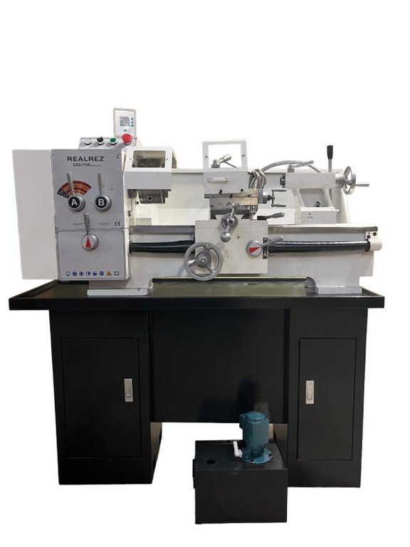 Токарно-винторезный станок REALREZ REZ-330x700 (УЦИ,СОЖ) (400V) подходит для производственных предприятий, ремонтных мастерских, а также инструментальщиков, для единичного и мелкосерийного производства. Станок оснащен защитой держателя инструмента и системой подшипников шпинделя, что обеспечивает безопасную и комфортную работу. Интуитивно понятный цифровой дисплей служит для удобной работы.