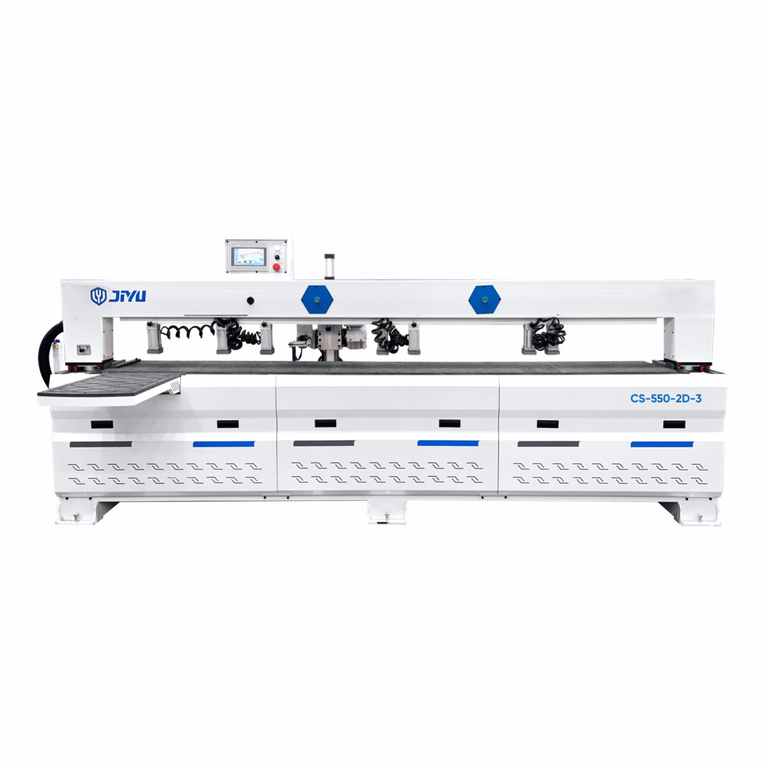Сверлильно-присадочный станок с ЧПУ JIYU CS550-2D-3 предназначен для высокоточного сверления глухих отверстий и фрезерования различных элементов в торце и плоскости плитных материалов. Сенсорный экран интуитивно понятен, информативен и прост в управлении, автоматическое прижимные устройства надежно удерживают детали в течении всего цикла обработки, а немецкая система управления высокоскоростным шпинделем обеспечивает точное позиционирование и обработку на высоких скоростях. Программная система лазерного сканирования Banner laser sensor (USA) контролирует расстояние до объектов и осуществляет автоматический контроль высоты, обеспечивая безупречно точное сверление и фрезерование торца детали.