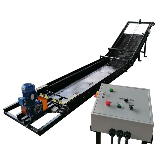 В лесопильной промышленности подобный транспортер применяют для удаления отходов деревообработки, к которым относятся стружка и опилки. Канатно-скребковый (тросовый) транспортер устанавливают вместе с оборудованием, которое требует перемещения отходов производства в накопитель.