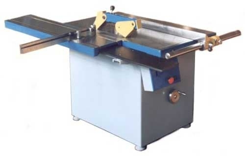 Для распиловки заготовок поперек волокон и под углом служит торцовочная каретка (чугунная, литая) с увеличенным ходом. Размеры каретки позволяют устанавливать и торцевать длинномерные заготовки. На каретке установлена направляющая линейка.