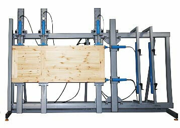 В стандартной комплектации оснащается тремя вертикальными, двумя горизонтальными прессующими блоками и две фронтальные балки с ручным прижимом. Горизонтальные передвижные прессующие блоки расположены на вертикальной передвижной балке. |