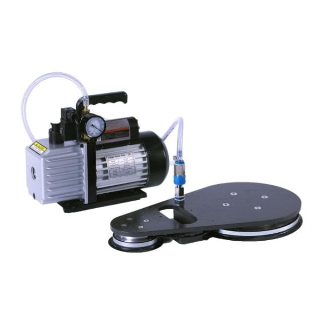 Овальное вакуумное приспособление для сверления на немагнитных гладких поверхностях (для крепления на рифлёной поверхности не подходит). Вакуумная плита присоединяется к насосу пневмошлангом. Со стороны насоса штуцер наружный ¼’’(вход), со стороны вакуумной плиты – быстроразъемное соединение.