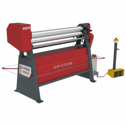 Трехвалковые электромеханические вальцы OSTAS серии SMR Турецкого производства, предназначены для проката листового металла и получения цилиндрических, конических и дугообразных изделий. Ассиметричная конструкция подразумевает осуществление подгибки перемещением заднего вала, причем для подгибки с двух сторон заготовку необходимо разворачивать и два раза поджимать задний вал, в отличие от четырехвалковых станков.