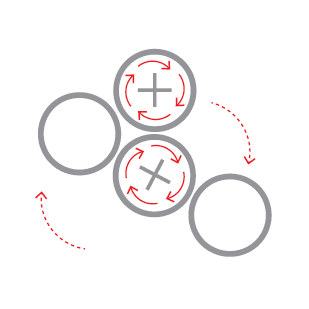 - Нажимной валок и боковые валки перемещаются гидравлическим поршнем сквозь раму кассетного типа – в моделях (4RH)