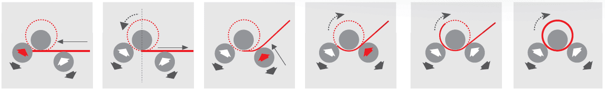 - три валка приводятся в движение гидравлическим двигателем с планетарной передачей;