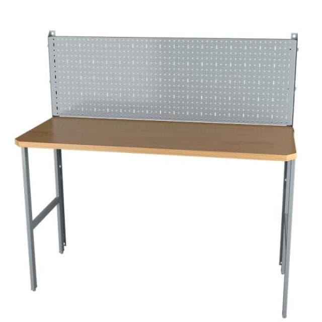 - Дополнительно на стол-верстак можно установить полку, всевозможные держатели инструмента, на перфорацию удобно крепятся магнитные держатели. Также с рабочим столом отлично сочетается навесная полка.