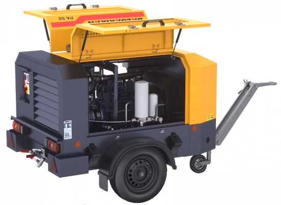 Для генерации сжатого воздуха на строительных площадках, карьерах и шахтах, при ремонтных работах дорожного покрытия и в других местах, где отсутствует электричество компания «DALGAKIRAN» разработала линейку винтовых дизельных передвижных компрессоров серии «PORTAIR» (PA). Современный дизельный компрессор PA предназначен для работы в самых сложных и неблагоприятных условиях эксплуатации, при отрицательных температурах. Благодаря грамотным конструктивным решениям компрессоры серии РА имеют одни из лучших рабочих показателей среди ведущих мировых производителей однотипного оборудования. Высокоэффективный винтовой блок, надежный и экономичный японский дизельный двигатель KUBOTA с классом токсичности выхлопных газов EPA Tier 4 / EU 3A, один из самых больших топливных баков в своем классе, неприхотливость в эксплуатации и увеличенный межсервисный интервал делают компрессор серии РА незаменимым удаленным источником сжатого воздуха.
