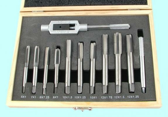 Комплектация: метчики однопроходные М6х1.0, М7х1.0, М8х1.25, М8х1.0, М10х1.5, М10х1.25, М10х1.0, М12х1.75, М12х1.5, М12х1.25мм; вороток для метчиков М3-М12мм (1/16"-1/2")