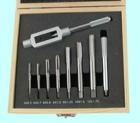 Вороток и 7 метчиков М3-М12 Р18 в деревянной коробке CNIC
