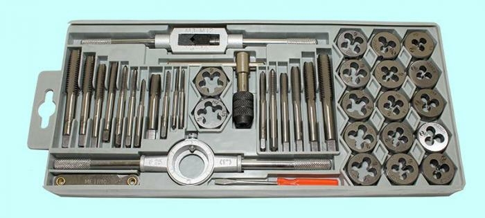 - Набор из 17 метчиков и плашек размерами от М3 до М12