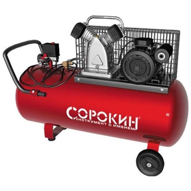 Компрессор поршневой 10атм, 2,2кВт, 220В, 420л/мин, горизонтальный ресивер 100л Сорокин 13.8 предназначен для нагнетания воздуха. Максимальное давление сжатия достигает 10 атмосфер. Используется на стройке, малых предприятиях. Широкое распространение имеет на шиномонтажах, так как ресивер, объемом 100 литров, очень продуктивен. Оснащен принудительной остановкой, что удобно при прерывистой работе.