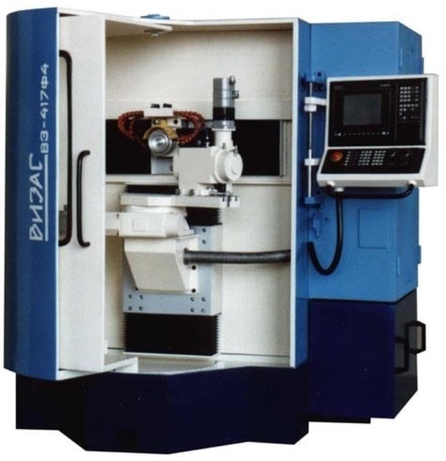 Полуавтомат шлифовально-заточный широкоуниверсальный с ЧПУ ВЗ-417Ф4 представляет собой широкоуниверсальный шлифовально-заточной станок с ЧПУ и предназначен для вышлифовки стружечных канавок с любыми параметрами на всех видах режущего инструмента из твердого сплава и быстрорежущих сталей, а также для заточки всех видов инструмента по любым поверхностям высокостойкими абразивными, алмазными и эльборовыми шлифовальными кругами с охлаждением и без него.