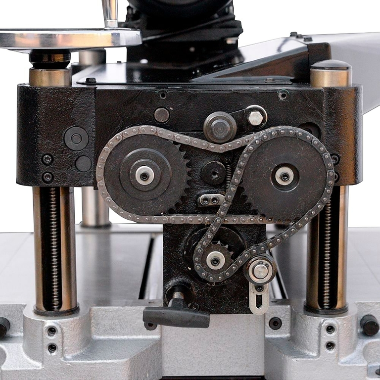 - Стол быстро и точно регулируется маховиком через жёсткий редукторный привод